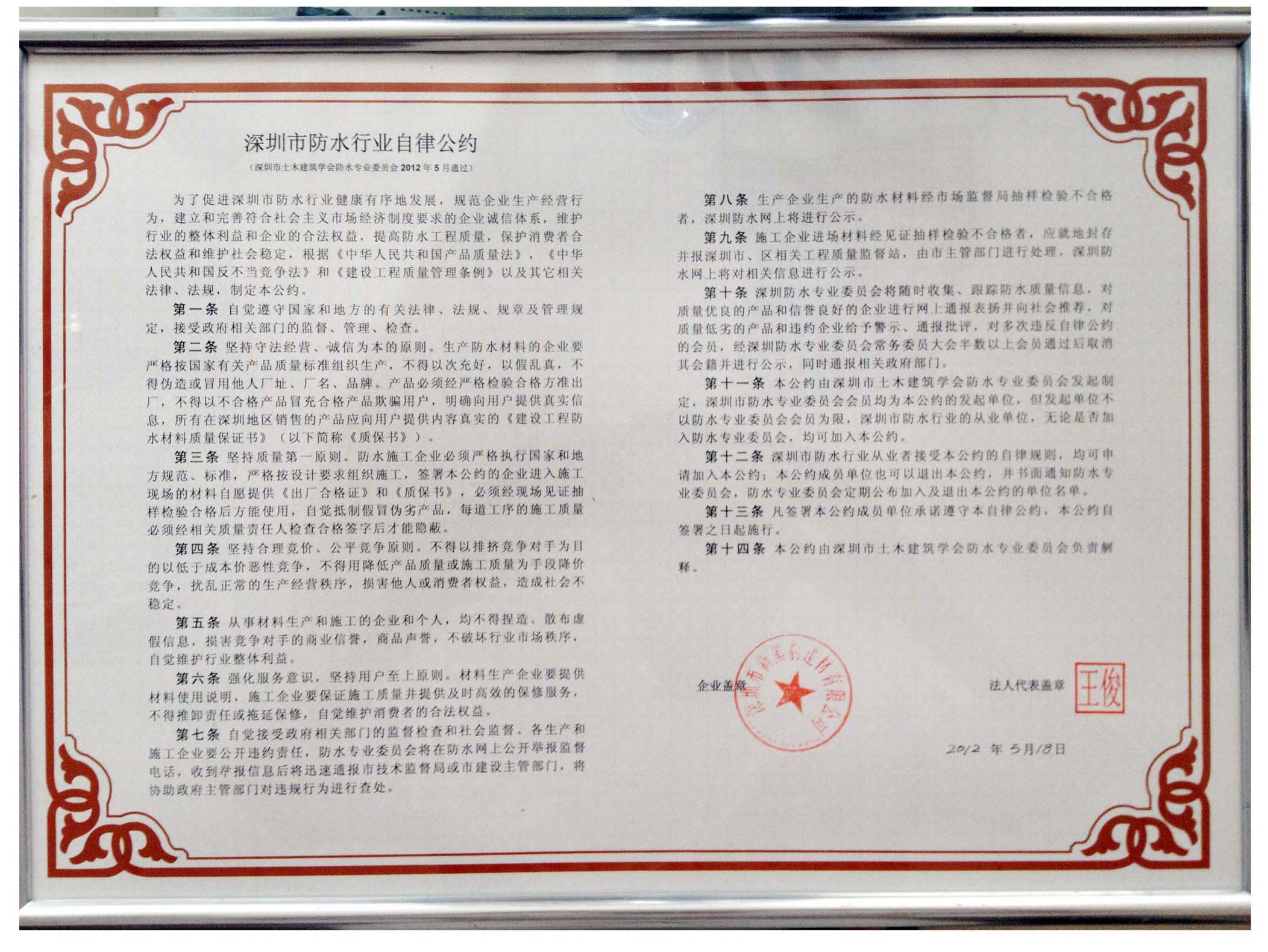 深圳市防水行業(yè)自律公約