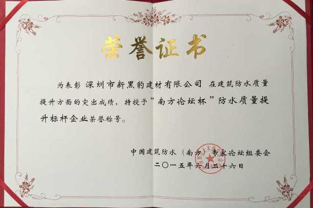 “南方論壇杯”防水質(zhì)量提升標桿企業(yè)