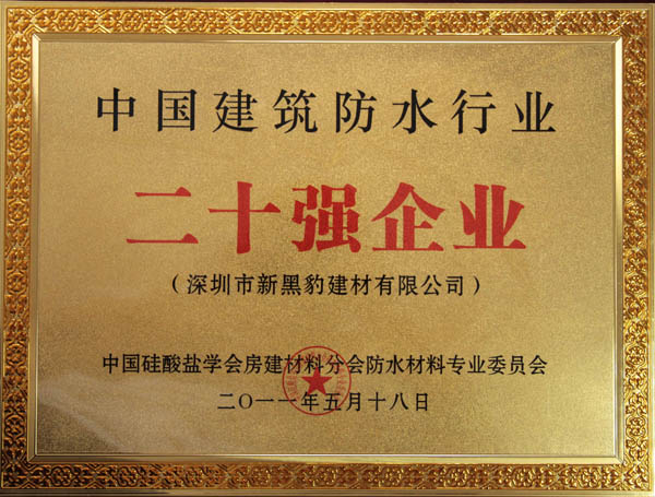 ★ 熱烈祝賀深圳市新黑豹建材有限公司榮獲中國建筑防水行業(yè)“二十強(qiáng)企業(yè)”