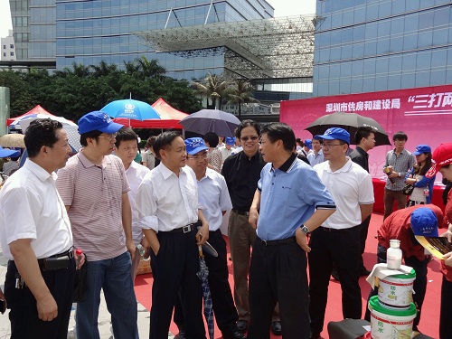 2012年4月29日上午在福田區(qū)的新城市廣場(chǎng),由深圳市住房和建設(shè)局主辦“三打兩建”現(xiàn)場(chǎng)宣傳活動(dòng),市住房和建設(shè)局領(lǐng)導(dǎo)、市場(chǎng)監(jiān)督管理局局長(zhǎng)親臨現(xiàn)場(chǎng)、市工程質(zhì)量監(jiān)督總站、市建筑業(yè)協(xié)會(huì)、市防水協(xié)會(huì)領(lǐng)導(dǎo)高度重視,現(xiàn)場(chǎng)接受咨詢,此次活動(dòng)得到了各企業(yè)、新聞媒體及廣大市民的積極響應(yīng)。展示現(xiàn)場(chǎng)備受局領(lǐng)導(dǎo)和市民關(guān)注的有:“黑豹”牌聚合物水泥防水涂料(真、假品);防水卷材、結(jié)晶型防水材料(真、假品),還有燃器(具)、鋼筋、水泥、消防器材、安全設(shè)施及防護(hù)器具等。