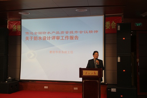瞿培華常務(wù)副主任傳達(dá)“全國建筑防水產(chǎn)品質(zhì)量提升工作會議”精神、作了《關(guān)于防水設(shè)計(jì)評審工作》報告。