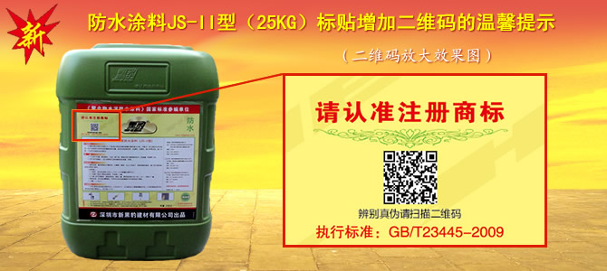 為了便于對本公司產(chǎn)品及防偽查詢更詳細(xì)的了解,保障消費(fèi)者的權(quán)益,本公司從2013年12月26日起,在聚合物水泥防水涂料JS-II型(25KG)的包裝標(biāo)貼上增加了二維碼。請掃描此二維碼并打開鏈接,即可詳細(xì)了解本公司產(chǎn)品的外觀特征及防偽查詢方法。如有任何疑問,歡迎隨時(shí)撥打本公司咨詢電話:0755-26634075,或添加本公司唯一的微信公眾平臺“hbheibao”咨詢。謝謝!