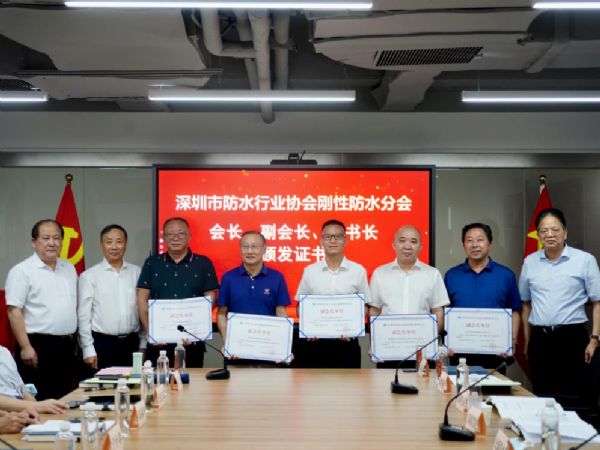 2022-7-30,深圳設(shè)計(jì)大廈華旗會(huì)議室,“深圳市防水行業(yè)協(xié)會(huì)剛性防水分會(huì)暨國(guó)控基業(yè)(北京)科技有限深圳分公司揭牌儀式”成立大會(huì)召開(kāi)。深圳市防水行業(yè)協(xié)會(huì)會(huì)長(zhǎng)瞿培華致辭。深圳城市建設(shè)類行業(yè)聯(lián)合黨委第一書(shū)記胡建文發(fā)表講話。中國(guó)建筑防水協(xié)會(huì)駐會(huì)副會(huì)長(zhǎng)羨永彪、巢文革、朱德明,深圳土木學(xué)會(huì)秘書(shū)長(zhǎng)劉福義、深大設(shè)計(jì)院教授張道真、江西防水協(xié)會(huì)秘書(shū)長(zhǎng)寧小春、福建防水協(xié)會(huì)會(huì)長(zhǎng)李文芳、海南防水協(xié)會(huì)會(huì)長(zhǎng)鄧錫華、深總院灣區(qū)院院長(zhǎng)王啟文受邀出席并講話。任命國(guó)控基業(yè)高進(jìn)軍為剛性防水分會(huì)會(huì)長(zhǎng),上海凱頓百森王凌琨為秘書(shū)長(zhǎng),北新防水陳立華、新黑豹王榮柱、先泰實(shí)業(yè)鄧騰、欣生沸石杜桂林、華捷新材料宛斌、廣東邦潤(rùn)曹永會(huì)為副會(huì)長(zhǎng),29家會(huì)員單位代表參會(huì),深圳防水協(xié)會(huì)秘書(shū)長(zhǎng)楊鳴主持會(huì)議。國(guó)控基業(yè)深圳分公司同期舉行揭牌儀式,執(zhí)行總經(jīng)理高寬講話。